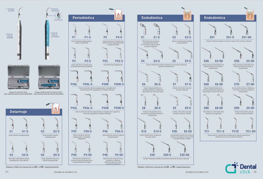 Puntas disponibles en entrada tipo satelec (S) y tipo (E)