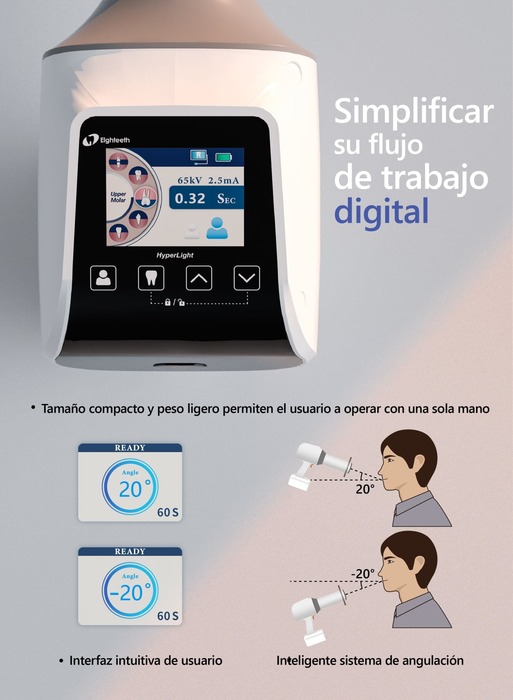 Con su diseño practico, ergonómico y eficiente, disfruta de tomar radiografías de alta calidad desde cualquier zona o posición sin tener que trasladar a tu paciente o cambiar tu forma de trabajo, ¡lo puedes usar incluso con una sola mano!